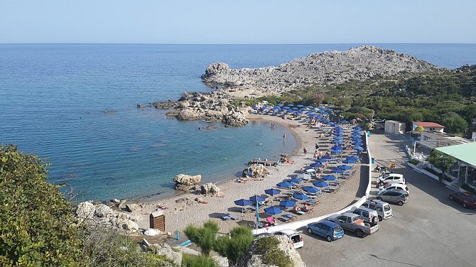Восточное побережье, пляж внизу и вид на Линдос
