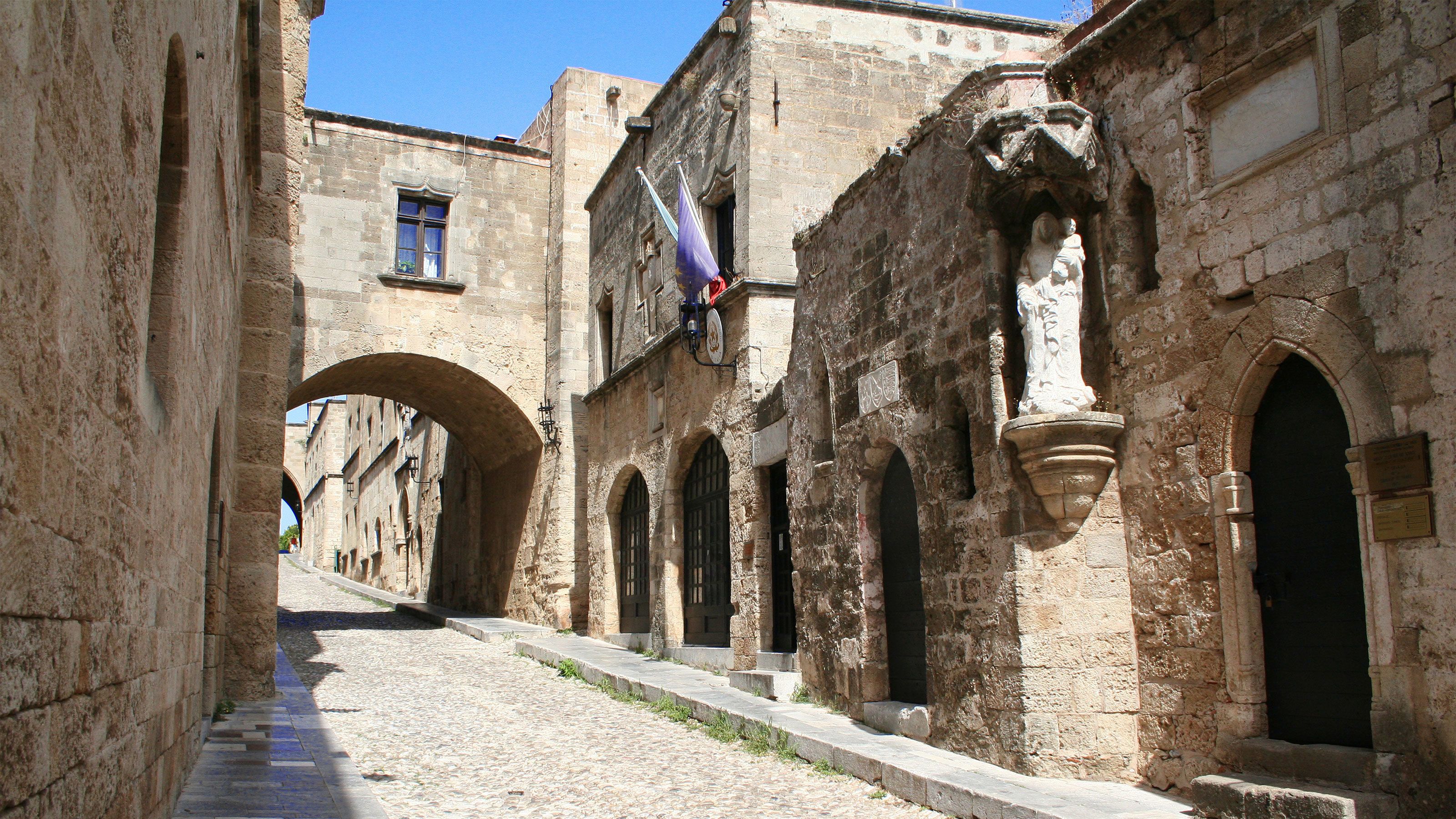 Самая сохранившаяся средневековая улица в Европе — улица Иппотон (Οδός των Ιπποτών [оðо́с тон ипото́н]) или в переводе Улица Рыцарей. На ней расположены административные здания представительств Ордена Святого Иоанна, госпиталь, лоджия, храмы и арсенал.