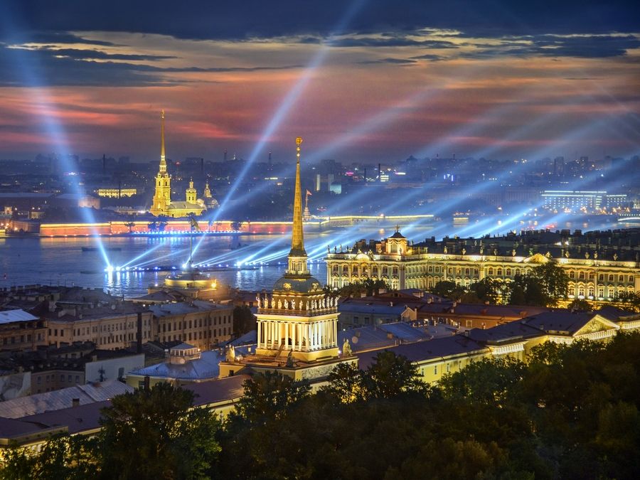 Белые ночи – своеобразный символ Санкт-Петербурга. Необычное природное явление, когда ночью не темнеет, наблюдается в период с конца мая до середины июля. В это время в городе проходят различные мероприятия. Одно из самых ярких – всероссийский бал выпускников «Алые паруса». Ежегодный праздник начинается с большого театрализованного концерта в центре города, а завершается грандиозным световым мультимедийным шоу в акватории Невы, кульминацией которого является проход вдоль набережных корабля с алыми парусами.