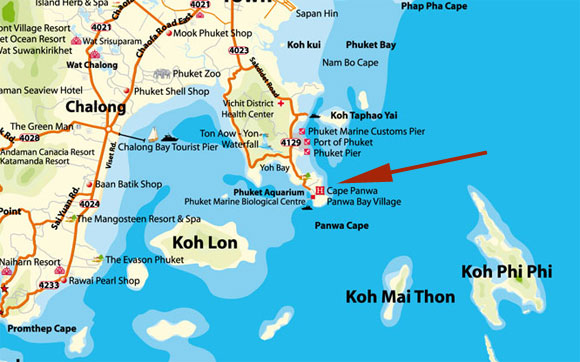 Он находится на севере острова Пхукет, в 32 километрах (20 минутах) от центра города Пхукет. Вот как добраться до него на личном транспорте: