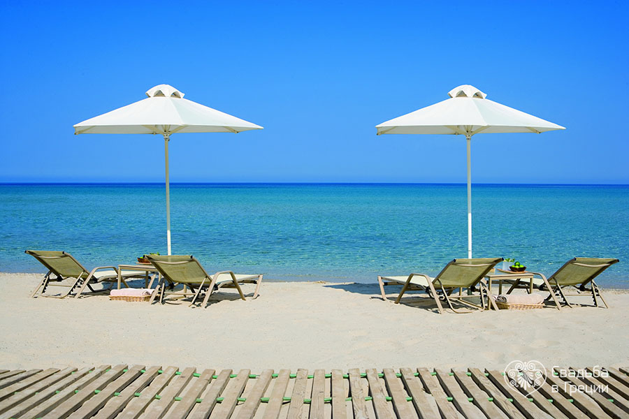 Частный природный песчаный пляж в сочетании с широким выбором бассейнов (для детей, только для взрослых, с подогревом и т. д.) предоставляют своим гостям бесконечные возможности. На курорте есть много ресторанов, предлагающих греческую и международную кухню, чтобы удовлетворить любое желание.