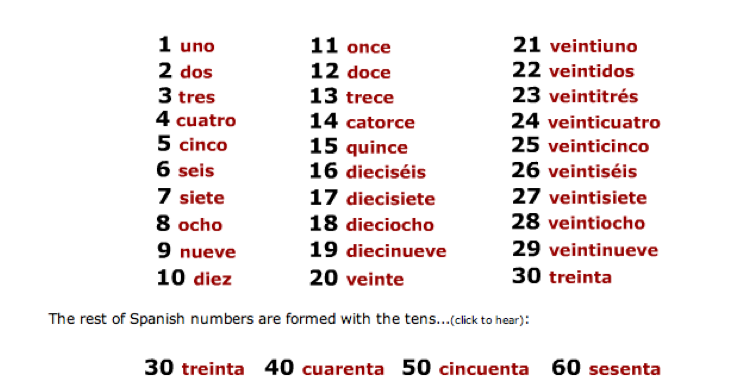С числами будет немного труднее. Песен на испанский счет после 20 нет, поэтому полагаться стоит только на себя. Чтобы запомнить числа, просто называйте их каждый день, к примеру, до 100. Когда с ними справитесь, считайте на испанском от 100 до 1 000. Ниже представлена таблица с цифрами и числами от нуля до биллиона.