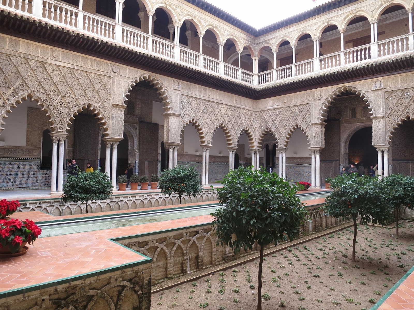 Помещения и дворы этой части севильского Алькасара хоть по роскоши и уступают гранадской Альгамбре, но выигрывают в том, что они куда более тихи и пустынны.