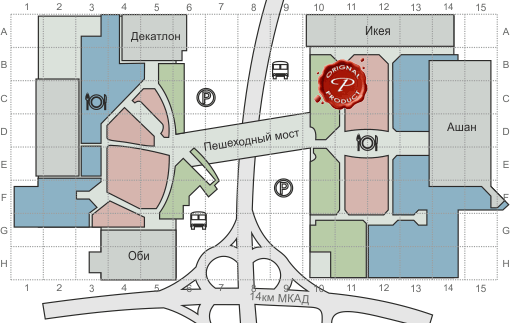 Для посетителей МЕГА состоит из двух корпусов, но на самом деле зданий больше. На карте BMS свое разделение.