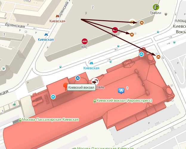 | Большой ассортимент разнообразных магазинов | Большие скопления людей |