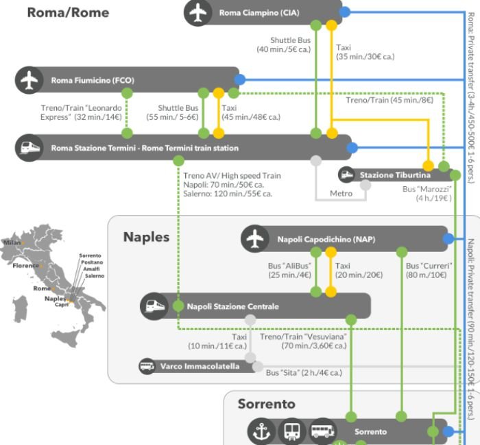 Метро линии A и B соединяют железнодорожный вокзал с сетью метро Рима.Автобусы Есть несколько автобусов перед вокзалом Термини, автобусы ходят по всему Риму.