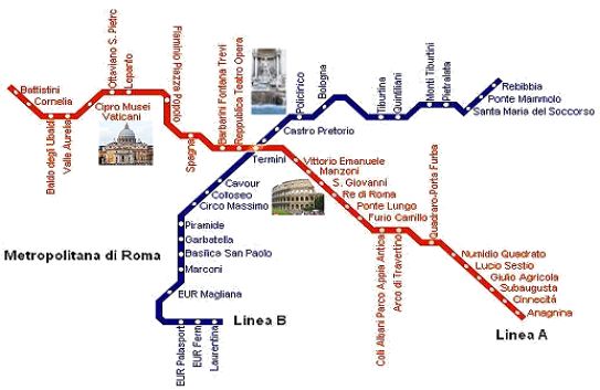 Линия В охватывает 22 станции и простирается с северо-востока на юго-запад итальянской столицы. Линия А действует с 1980 года и включает в себя 27 станций. Линии А и В пересекаются у центрального вокзала Термини. Здесь осуществляется пересадка с одной ветки метро на другую. В дальнейшем предусматривается увеличение числа станций на линии С и продление данной ветки за пределы города. Планируется в ближайшем будущем построить еще тридцать станций метро.