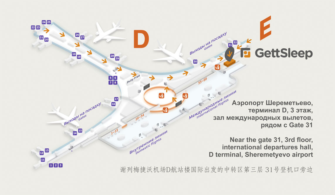 Расположение: Терминал Е, 3-й этаж, Пост-секьюрити