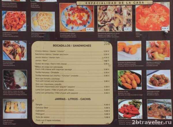 Поскольку мы жили в отеле и у нас было 3-разовое питание, то по ресторанам в Бенидорме мы не ходили. Для отчета сфотографировала меню некоторых кафе, поэтому, смотрите сами: