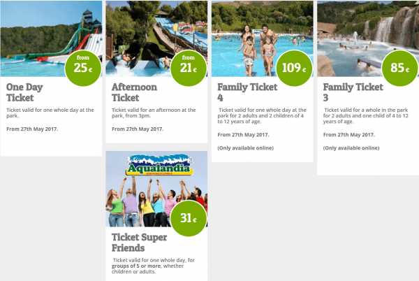 Есть разные типы билетов, но основной на один день стоит 34€ взрослый и 25€ детский, семейный – 114€, групповой для 4 взрослых – 132€