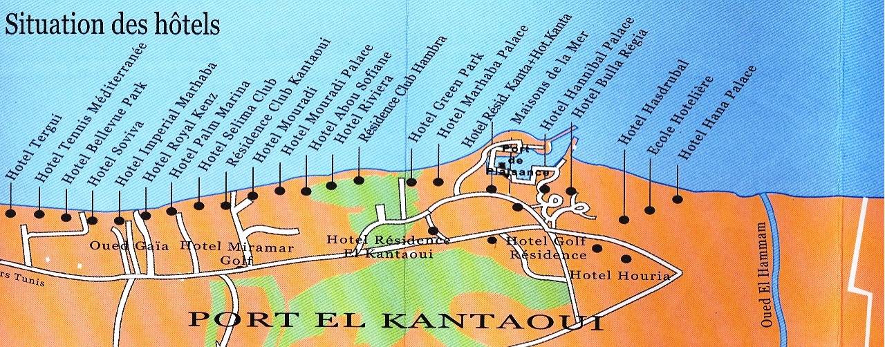 До центра столицы — 8 километров, а до основным курортных зон — 15 километров. Например, до известного Хаммамета ехать около часа по Трансафриканскому шоссе.