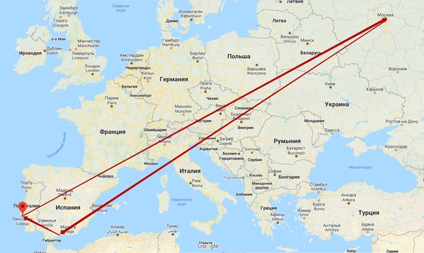 Ваш рейс из Москвы, Россия, в Лиссабон, Португалия: запад, (-99 градусов по северу).