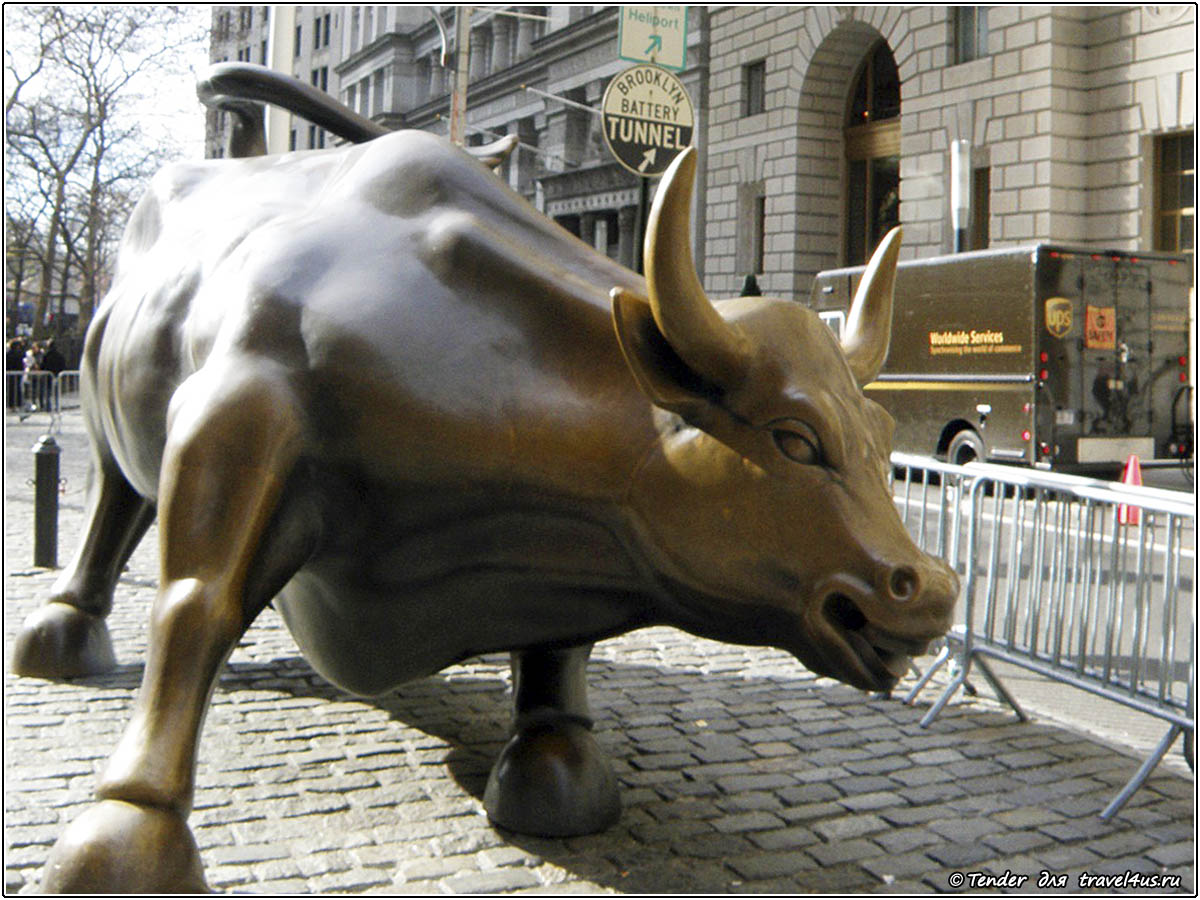 Что обещает Сегодня «Бык с Уолл-Стрит» популярен не только у американцев. Особенно его любят китайские и индийские туристы. Первые — потому что скульптор установил копию быка в Шанхае, но оригинал всегда интересней. А вторые приезжают посмотреть на памятник, потому что он фигурирует в известном индийском фильме «Kal Ho Naa Ho». Трейдеры говорят, что бык приносит финансовую удачу, если подержаться за его рога.