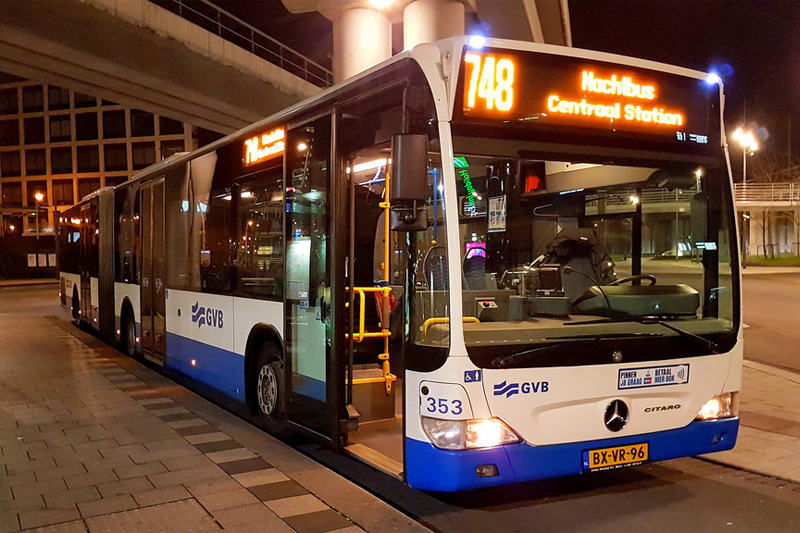 АВТОБУС — последний автобус, следующий до автовокзала Амстердам Слотердайк.