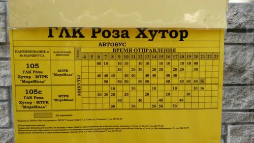 * Обратите внимание на тот факт, что не все маршрутки № 105 едут до комплекса «Роза Хутор». Некоторые доезжают лишь до аэропорта. В этом случае Вам нужно будет ждать другой транспорт. Поэтому уточняйте маршрут заранее.