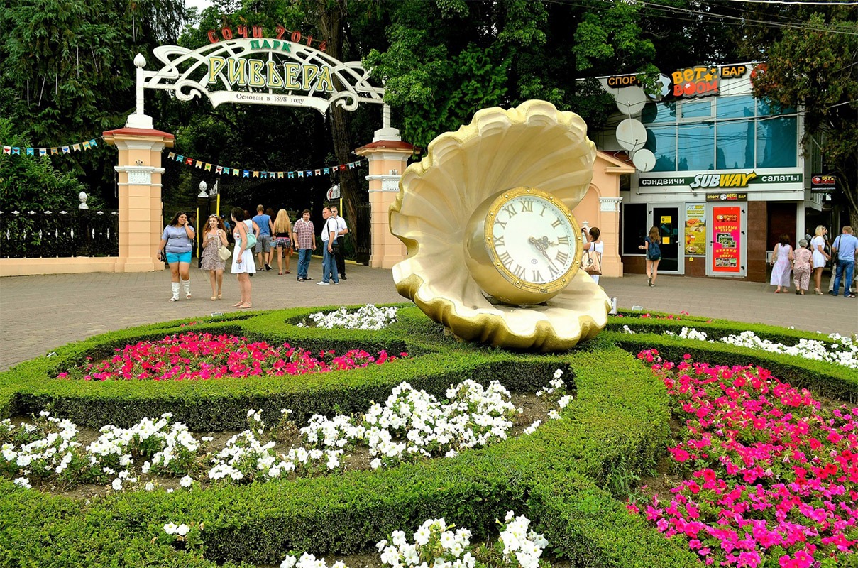 Курортный парк Ривьера — самое популярное парковое развлечение в Сочи.Он был основан предпринимателем и почетным гражданином города Василием Хлудовым в 1898 году в центре города, на правом берегу реки Сочи. В советское время парк был местом встреч и прогулок отдыхающих. В настоящее время парк объявлен объектом историко-культурного наследия Сочи и памятником архитектуры и ландшафта регионального значения. Его площадь составляет около 15 га. Сейчас в парке можно увидеть огромное количество аттракционов, также есть спортивный городок, картинг-трек, библиотека, выставочный зал, кинотеатр, аквариум, дельфинарий, ночной клуб.