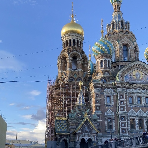 Спас-на-Крови (Храм Воскресения Христова) в Санкт-Петербурге — православный храм-музей, построенный на месте убийства российского императора Александра II Освободителя. Этот действующий собор с девятью столбами, вмещающий 1 600 человек, является символом города и одной из его главных достопримечательностей. Основная композиция собора представляет собой компактную пятикупольную массу, дополненную тремя полукруглыми апсидами на востоке и массивной колокольней в форме колонны на западе. Восьмиугольный шатер — это место, где проходит центральная глава. Пять центральных капелл покрыты цветной эмалью по медному листу, а маленькие луковичные главы и центральная голова Спаса на Крови имеют традиционную позолоту. Из-за этих деталей церковь Воскресения Христова часто сравнивают с московской церковью Василия Блаженного.