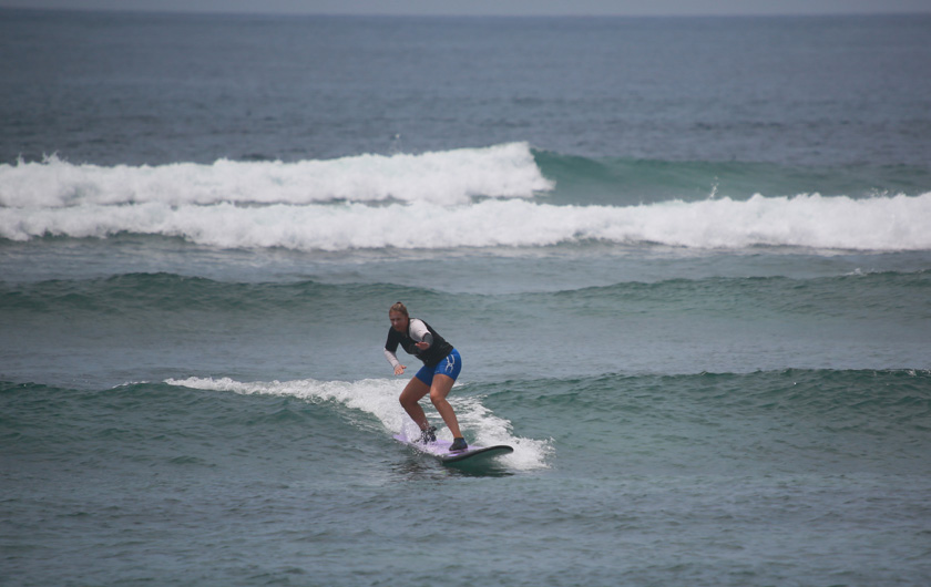Волны плавные. А песчаное дно работает как подушка безопасности в случае неудачного движения.