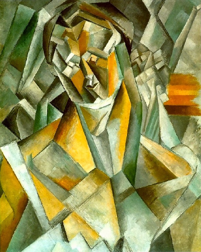 Пикассо, казалось, разрушил саму идею твердой формы, не только фрагментировав человеческую фигуру и другие формы, но и используя концепцию перехода Сезанна, чтобы объединить фигуру и окружающую среду, твердое и пустое, фон и передний план. Таким образом, он создал визуально последовательную картину, но эта последовательность не соответствует физической последовательности природного мира, как мы его воспринимаем. Решение Пикассо ограничить свою цветовую гамму темно-коричневыми и серыми цветами также говорит о том, что его картины инициировали радикальный отход от природы, а не пытались скопировать ее.