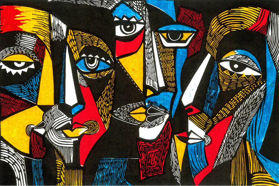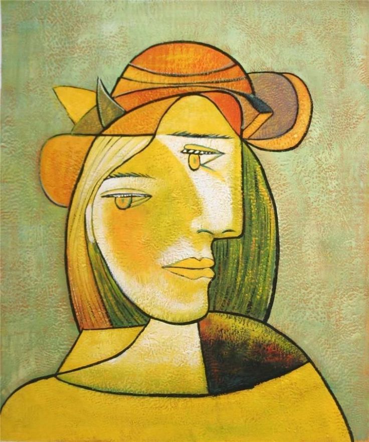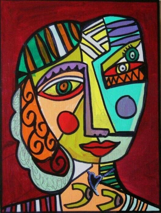 Кубистский портрет длинноволосой женщины 9,4 Ш x 13 В x 0 Г в