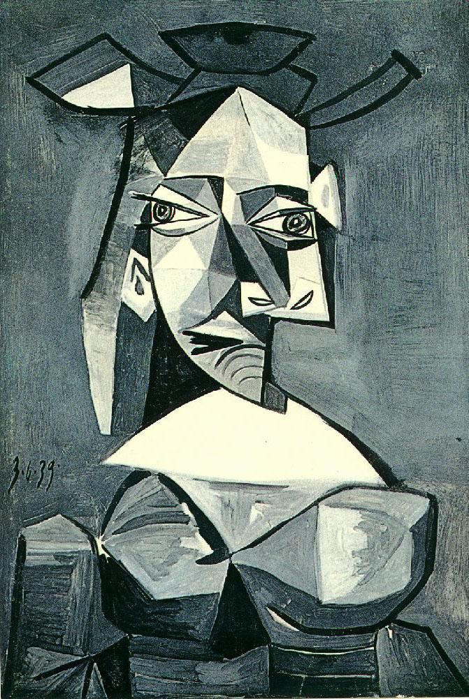 Пикассо интересовала тема страданий. Эта детализированная картина с искаженным в гримасе, деформированным лицом считается продолжением «Герники».
