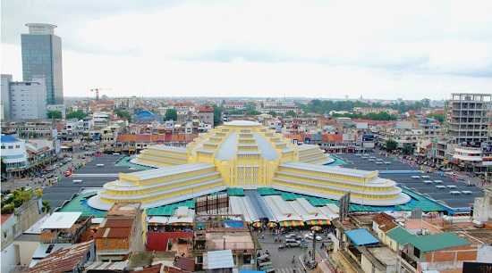 - Центральный находится в пешей доступности от Ват Пнома и работает с 5 утра до 5 вечера. Его можно узнать по величественному зданию цвета охры с красивым куполом, построенному еще французами в 1937 году. Здесь продают все – от техники, электроники до сувениров, продуктов питания.