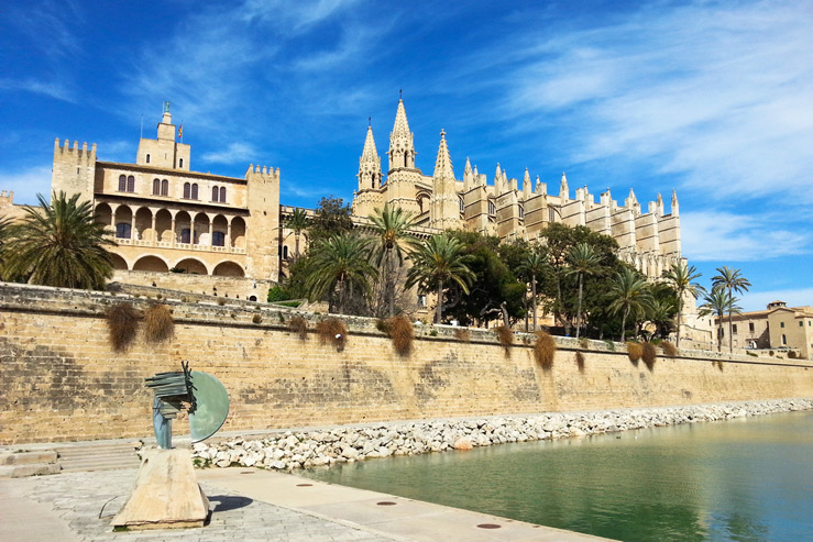 На берегу моря расположился Кафедральный собор — самое узнаваемое здание Пальмы. Его строительство началось еще в XIII веке и продолжалось четыре столетия. Из-за столь долгого строительства в архитектуре здания можно встретить черты романского стиля, барокко и готики. В отличие от традиционных мрачных готических соборов, залы Ла Сеу заполнены светом.