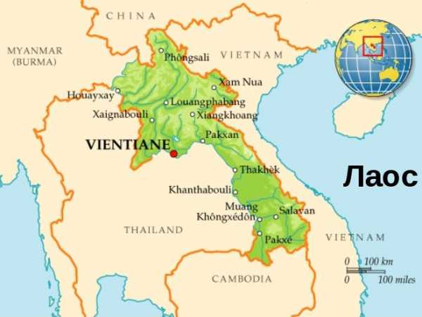 Где находится государство Лаос и с какими странами оно граничит, хорошо видно на карте мира. В северо-западной части страны проходит граница с Мьянмой. Благодаря такому геоположению Лаос попал в «золотой треугольник» на стыке Таиланда и Бирмы. По площади страна Лаос занимает 236 800 кв. км.
