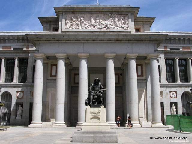 Сам Prado National Museum представляет собой величественное сооружение, выполненное в стиле неоклассицизма. Центральный вход в здание, выходящий на одноименную аллею, украшен 6 белоснежными колонами, а перед самим паноптикумом стоит памятник Диего Веласкесу, одному из основоположников изобразительного искусства Испании.