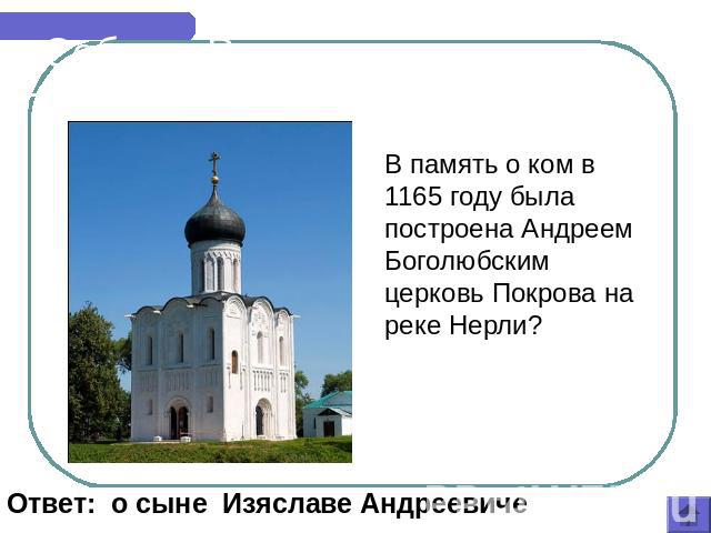 Строительство церкви на слиянии рек Нерли Клязьмы обеспечивало контроль волжского торгового пути, соединявшего Владимиро – Суздальское княжество с другими землями.