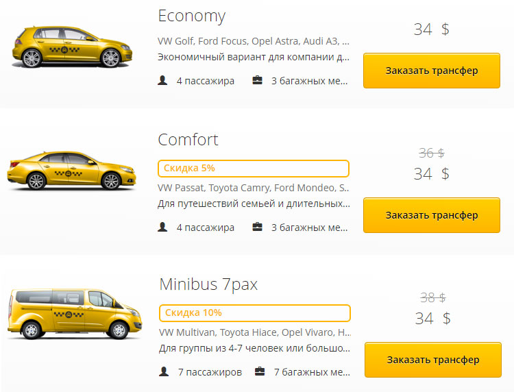 При обращении на стойку заказа такси вам будет предложено выбрать класс автомобиля и маршрут следования.