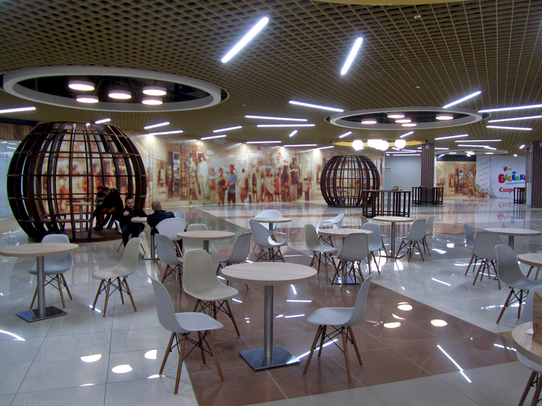 «Ресторанный дворик» будет полезен, если Вы проголодались. Там можно выбрать между «Бургер Кинг», «Крошка Картошка», «Воккер», «Subway», «Теремок» и другими ресторанчиками, расположенными по кругу. Работают модные в Европе кафе «Хлеб Насущный», Starbucks и «Coffeeshop company».
