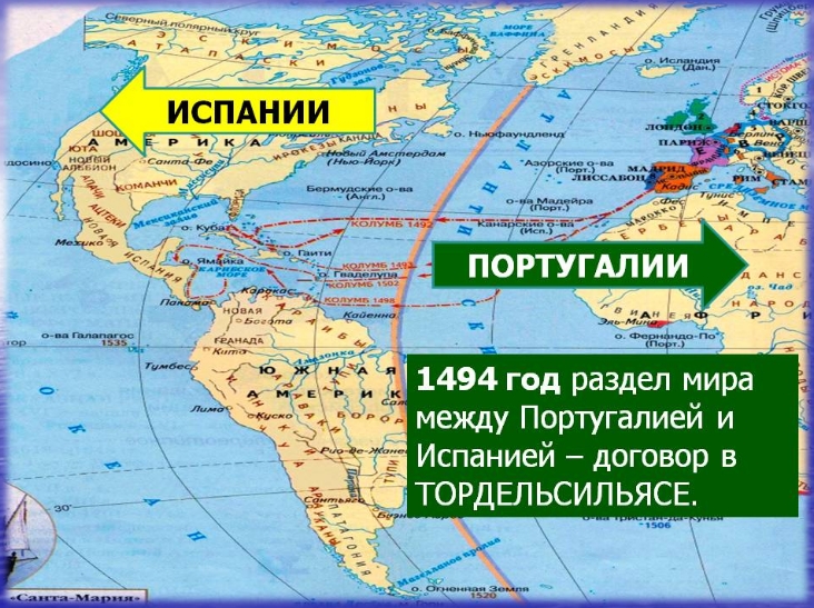 Побуждаемая гонкой за поиском прямого пути в Китай, Испания фактически высадилась в Западном полушарии в 1492 году. Эта земля, ранее неизвестная европейцам, была открыта для завоеваний. Возникшая империя Испании была укреплена после того, как папская булла в 1493 году, известная как Inter Caetera , и Тордесильясский договор, подписанный в 1494 году, разделили мир (за пределами Европы) между испанцами и португальцами.Эти два документа давали Испании исключительное право на создание колоний в западном полушарии, за исключением территории, которая впоследствии стала Бразилией, которая была зарезервирована за португальцами. Испанцы также получили право колонизировать дальневосточные районы Азии.