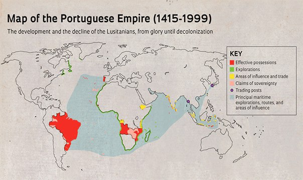Современный колониализм начался во время так называемой эпохи открытий.Начиная с 15 века Португалия начала искать новые торговые пути и искать цивилизации за пределами Европы. В 1415 году португальские исследователи захватили Сеуту, прибрежный город в Северной Африке, положив начало империи, которая просуществовала до 1999 года.