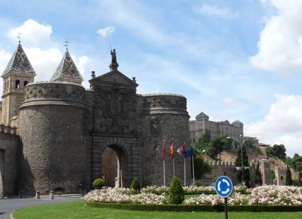 Ворота БисаграВорота Бисагра — главный вход в Толедо с равнины. Были построены маврами в 10 веке. Триумфальная арка ворот защищена двумя круговыми оборонительными башнями. Над аркой находится огромный рельеф с гербом города, а за входом расположен двор с зубчатыми стенами и ещё одной парой башен.