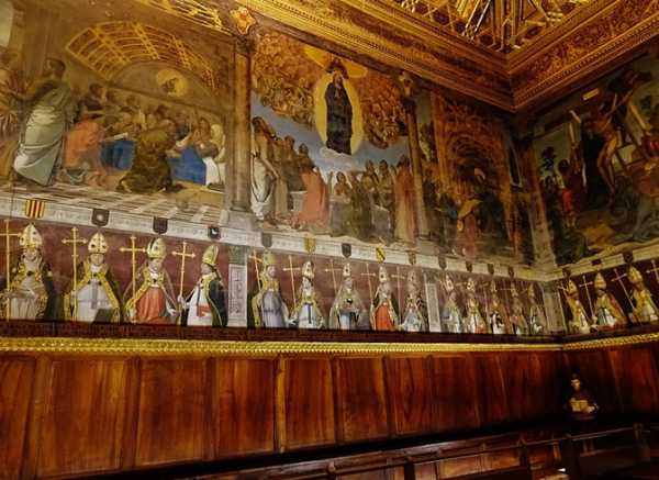 Внутри собор ярко украшен резными деталями из позолоченого дерева, скульптурами на евангельские сюжеты, картинами и фресками знаменитых мастеров – Эль Греко, Тициана, Франсиско Байеу, Караваджо.