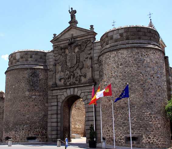Статуя Карла V и больших размеров герб династии Габсбургов на воротах Бисагра EcelanДата строительства – 16 столетие. Изначально ворота являлись самостоятельной оборонительной цитаделью. Внешнюю часть Бисагра украшает несколько цилиндрических башен с бело-зелеными черепичными крышами, центр – гигантский каменный орел с двумя головами. Гиды в Толедо способны рассказать множество замечательных фактов об этом старинном сооружении.