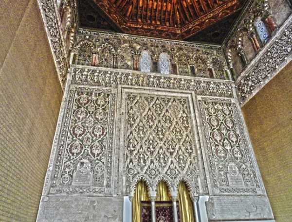 Потолок синагоги дель Трансито в Толедо WindwhistlerДата создания – 14 столетие. Архитектурный шедевр украшен выгнутыми арочными окнами, надписями на иврите и арабском наречии, оригинальными цветочными и геометрическими принтами, другими узнаваемыми элементами мавританского стиля. После того, как в 1492 году евреи были изгнаны из страны, синагога перешла во владение рыцарей. Сегодня тут обустроен музейный комплекс с работами прославленного скульптора и художника Эль Греко (сам он тут не проживал никогда).