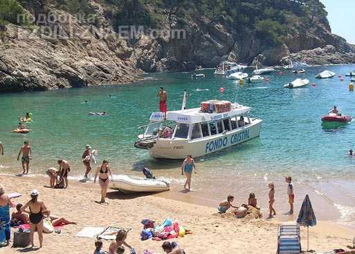 На фото: рядом с Тоссой де Мар есть отличные небольшие пляжиОднако если хотите полюбоваться настоящими берегами Коста Брава, отправляйтесь на одном из морских “трамваев” “Fondo Cristal” в близлежащие бухты. Например в бухту Cala Pola – это 4 км от Тоссы. Побережье в районе тосса де Мар изобилует такими небольшими и уютными пляжами. Самый удаленный пляж Platja de Vallpregona расположен в 11 км от Тоссы.