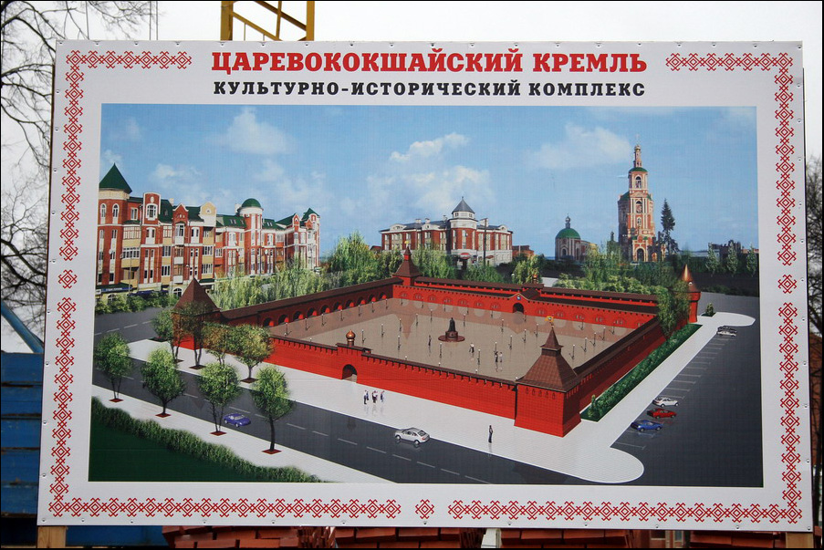 ඉතා මෑතකදී, Кремль Царевококшай අගනුවර මධ්යයේ ඉදිකරන ලදී රතු ගඩොල්, බිත්ති කොළ පැහැති වහලකින් ආවරණය කර ඇති කුළුණු වලින් සාදන ලද රුසියානු බලකොටුව ඓතිහාසික චිත්රපටයක දර්ශන වලට සමානයි. මෙම සංකීර්ණයේ පල්ලියක්, පුරාවිද්යා සහ නගරයේ නිර්මාතෘ ෆෙඩෝර් අයෝනොවිච්ගේ ස්මාරකයක් අඩංගු වේ වේ.