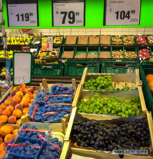 Чтобы вас максимально порадовали цены на продукты в Сербии, лучше всего сюда направляться в начале осени, это сезон сбора овощей и фруктов, в это время цены минимальные.