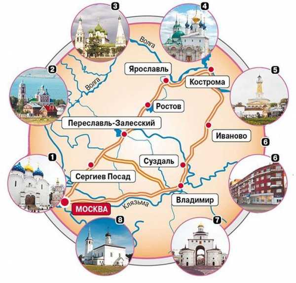 Русский искусствовед Юрий Бычков является основоположником идеи создания туристского маршрута «Золотое кольцо», который в своем истинном значении состоит из 8 исторически важных городов России. Они сохранили культурную ценность и первозданность, которая по сей день повествует о жизни и быте русского народа Северо-Восточной Руси. Знаменитый туристический маршрут «Золотое кольцо» включает в себя города: Ростов Великий, Сергиев Посад, Переславль – Залесский, Ярославль, Суздаль, Владимир, Кострому и Иваново. Далее, более подробно о каждом из них.