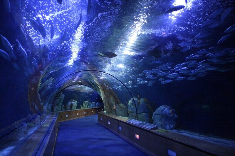 Океанариум.Территория и архитектураУдивительный океанографический комплекс поражает площадью, грамотным разделением на зоны и общей гармоничностью.