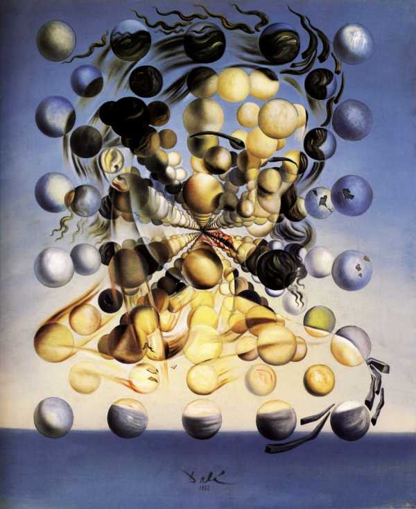 - Одна из многих картин, относящихся к периоду увлечения Сальвадора физикой. Он разбивает образы, предметы и лица на шаровидные корпускулы или некие подобия носорожьих рогов (ещё одна навязчивая идея, продемонстрированная в дневниковых записях). И если примером первого приёма служит «Галатея со сферами» (1952) или данная картина, то на втором построен «Взрыв головы Рафаэля» (1951).