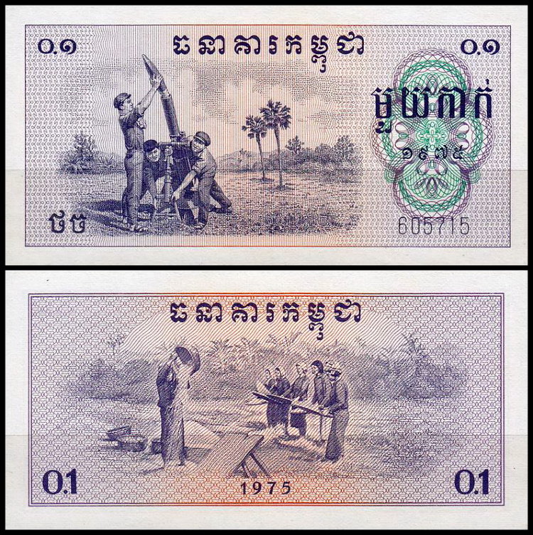 Лидер красных кхмеров Пол Пот, управлявший в 1975-1979 году Демократической Кампучией (так называлась страна в 1975-1992 гг.), отменил деньги и ликвидировал банковскую систему. Здание Нацбанка в Пномпене было разрушено. Обращение риеля прекратилось.