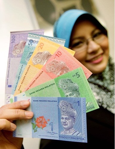 Ринггит (MYR; символ RM) = 100 сен.Банкноты достоинством 100, 50, 10, 5 и 1. Монеты достоинством в 50, 20, 10, 5 и 1 сен. Ринггит часто называют малазийским долларом.
