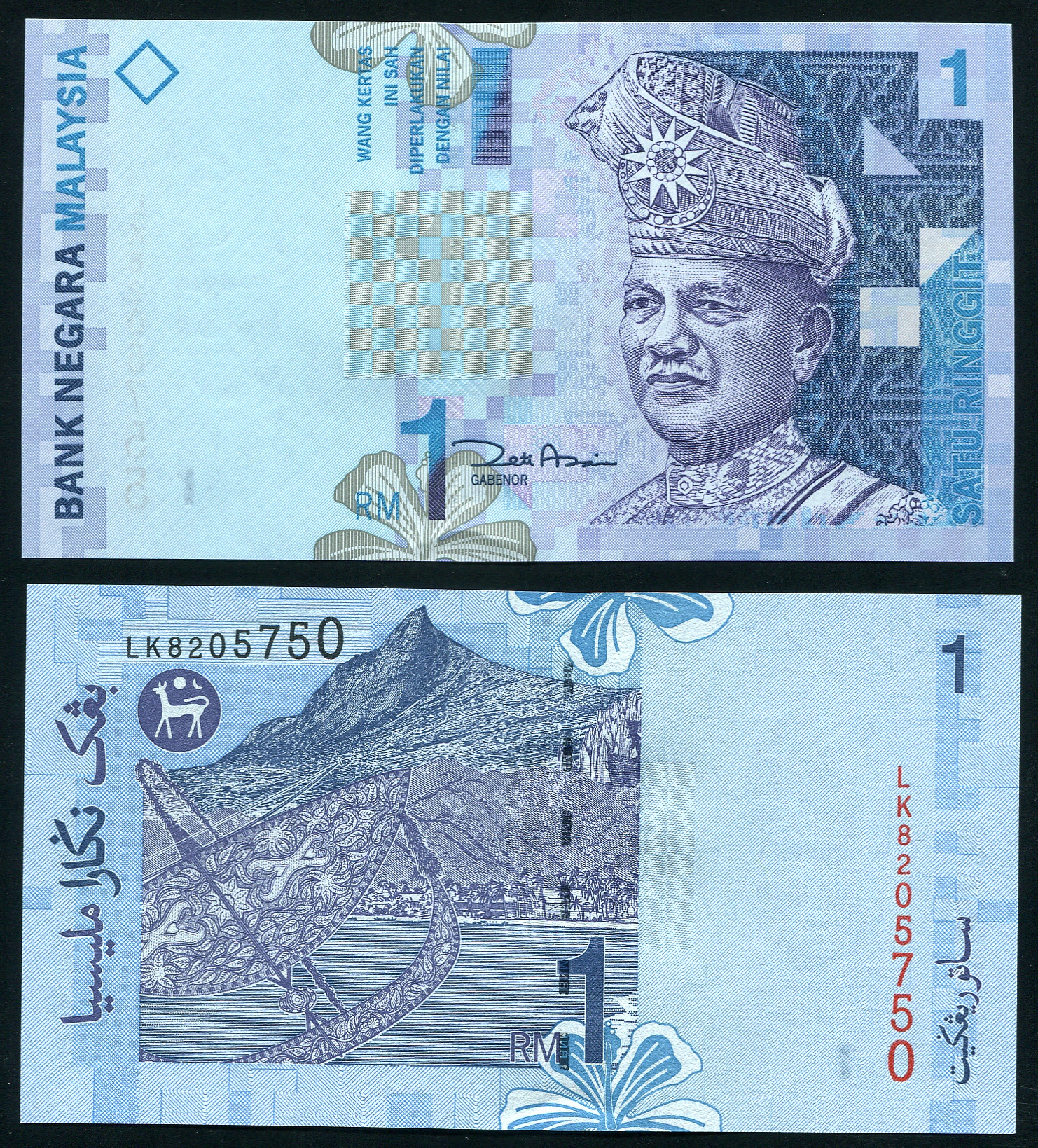 Нетак давно появились новые монеты, 1 ринггит. На его лицевой стороне помещен портрет Туанку Абдул Рахмана. На обороте — прибрежный пейзаж и гора, защищено водяным знаком в виде портрета Туанку Абдул Рахмана. Защитная нить проходит по центру. Цвета банкнота — голубой, темно-синий и фиолетовый.