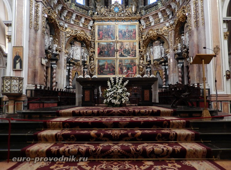 Мастерство, с каким написаны фрески, их повсеместное изобилие, гармоничность этой сверхмасштабной работы в стиле барокко, прекрасно вписанной в готическую конструкцию церкви заставили нас на какое-то время забыть обо всем — и отдаться безмолвному созерцанию красоты.