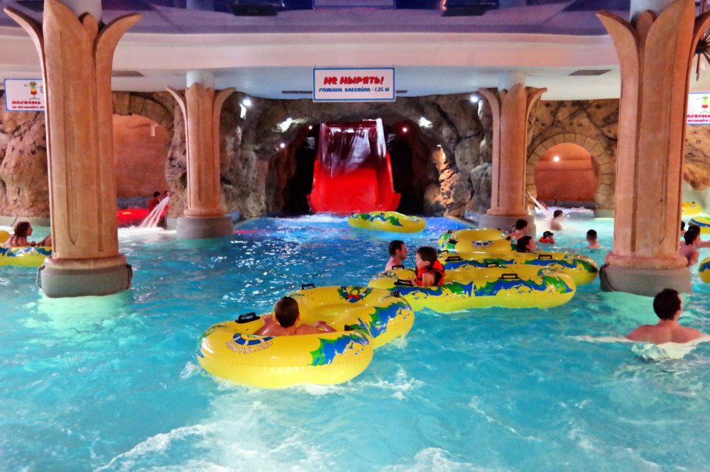 Комплекс теплых гидромассажных бассейнов, а также река с реверсивным течением, водопады и гейзеры. Аттракцион одновременно расслабляющий и бросающий вызов. Всё зависит от того, чего требует ваше настроение.