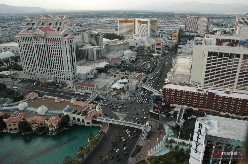 На автомобиле добраться проще простого, так как самые главные и широкие автомагистрали ведут в Лас-Вегас. По автомагистралям можно добраться из любого штата. Однако надо помнить о +40 – +50 градусной жаре, и лучше всего оставлять машину в тени или на стоянке с кондиционером. Кроме того в городе очень трудное и жесткое автомобильное движение.
